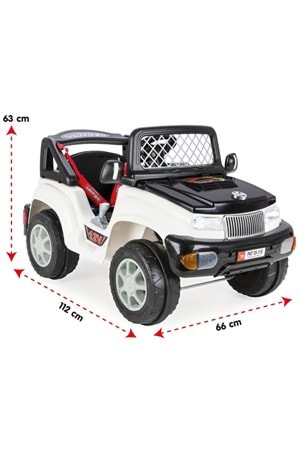 -Kullanım 3 + Yaş -Max. Kapasite:35 Kg -Hız: 3,5-7 Km/h -12 V Akü,12 V Şarj Cihazı -2 x 12 V Arka Motorlar -1X12 V Direksiyon Motoru -Thermoprotector (Aşırı Isı ve Akıma Karşı Devre Koruma) -İleri/Geri Vites(vites değişikliğinde 1 sn gecikmeli devreye girme özelliği) -Akıllı Anahtar Sistemi (Işıklı) -Emniyet Kemeri, Elektronik Korna ve sabit ayna -Sökülebilir Ön ve Arka Siperlik ve açılabilir ön kaput -Sökülebilir Akü Seti -Araç ön kaputun altında bulunan şarj giriş yuvasından veya şarj aparatı ile şarj edilebilir. -Aracın yavaş yavaş hareket ederek kalkış özelliği -Hareket Halinde Yanan Farlar -Ayak gaz pedalından çekilince otomatik olarak frenleme yapar. -Antensiz Uzaktan Kumanda (2,4 GHZ) -Çocuğun aracı kullanım esnasında ebeveynin uzaktan kumandadan kontrol edebilme özelliği -Frekans sabitleme özelliği ile diğer uzaktan kumandalarla karışmamaktadır. -Uzaktan kumanda üzerinden 3 kademeli hız seçeneği özelliği (Hız geçiş aralıklarında az fark bulunmaktadır.) -Uzaktan kumanda ile frenleme yapabilme özelliği -Kanserojen Madde İçermeyen Çocuk Sağlığına Uygun Hammadde