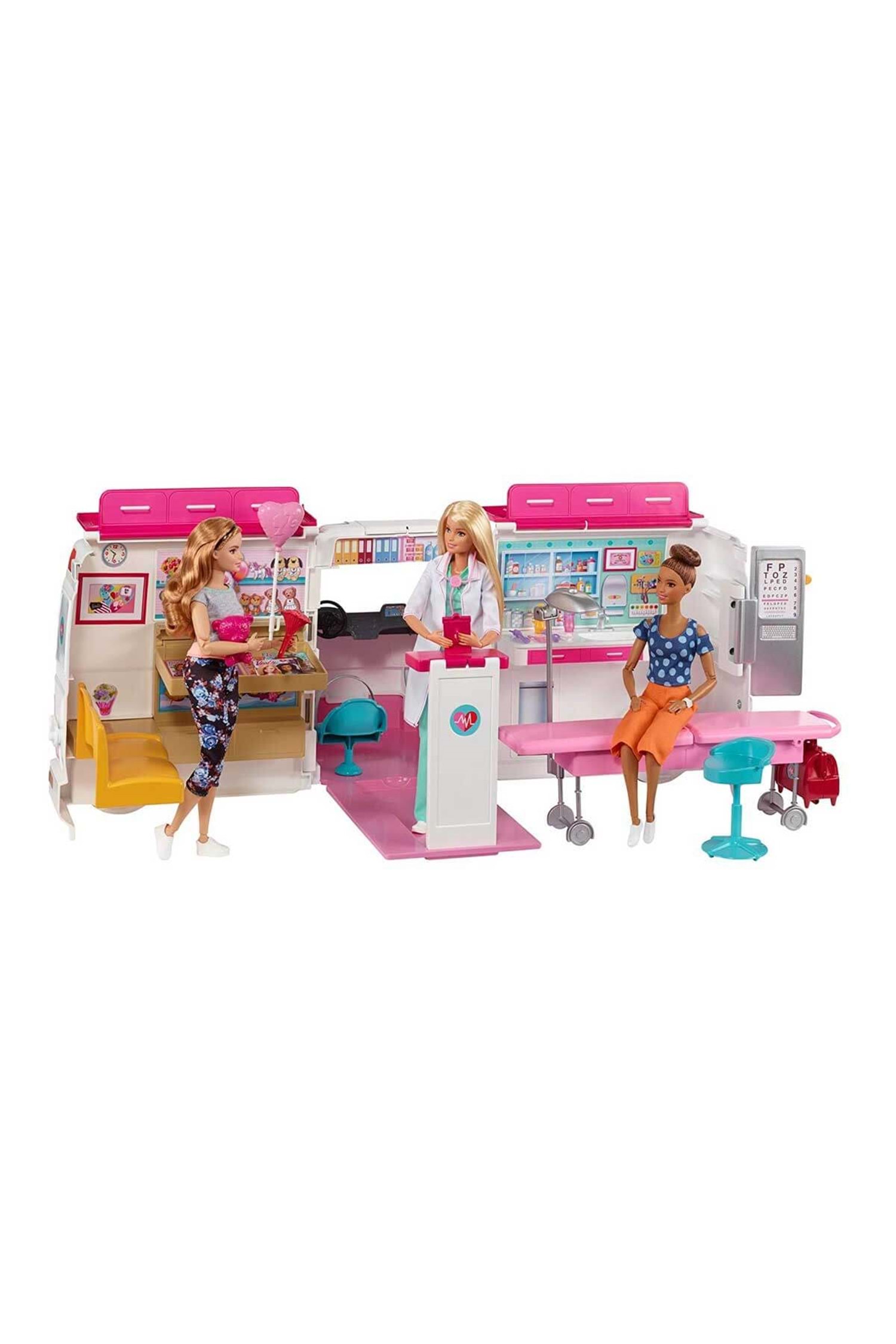 Barbie’nin Ambulansı ile Barbie kaza yapan hayatları kurtarmaya hazır! Ambulansın içindeki gerçekçi detaylar sayesinde sınırsız hikaye yaratmak sizin elinizde! Hem bir ambulans hem de bir hastane olan Barbie Care Clinic, kolay bir dönüşümle ikisi bir arada eğlence sunuyor. Çalan siren sesleri ve çağrılara yanıt verme özellikleri sayesinde oyun şimdi daha eğlenceli! 3 oyun alanına dönüşen ambulansta ışıklar düğmeye basılarak açılır ve siren sesleri çalmaktadır. Tüm parçaları ambulansın içerisinde kolayca yerleştirip kapıları kapatarak Barbie’nin ambulansını güvenle her yerde yanınızda taşıyabilirsiniz. Her iki taraf da üç farklı oyun alanını ortaya çıkarır: açılır kapanır resepsiyon masası ve döner sandalyeli bir check-in alanı, televizyonun arkasına gizlenmiş bir sürpriz hediyelik eşya dükkanına sahip bir bekleme odası ve bir çift kişilik x-ray makinesi içeren bir muayene odası ve bir vizyon çizelgesine sahiptir. Bir stetoskop ve tansiyon aleti, koltuk değnekleri gibi tıbbi malzemeler, bekleme odası dergileri ve oyuncak ayı veya balon gibi hediyelik eşya malzemeleri ve daha birçok aksesuar içermektedir. Bebekler ürüne dahil değildir. Kutu Ölçüsü: 46,5 x 27 x 19,5 cm.