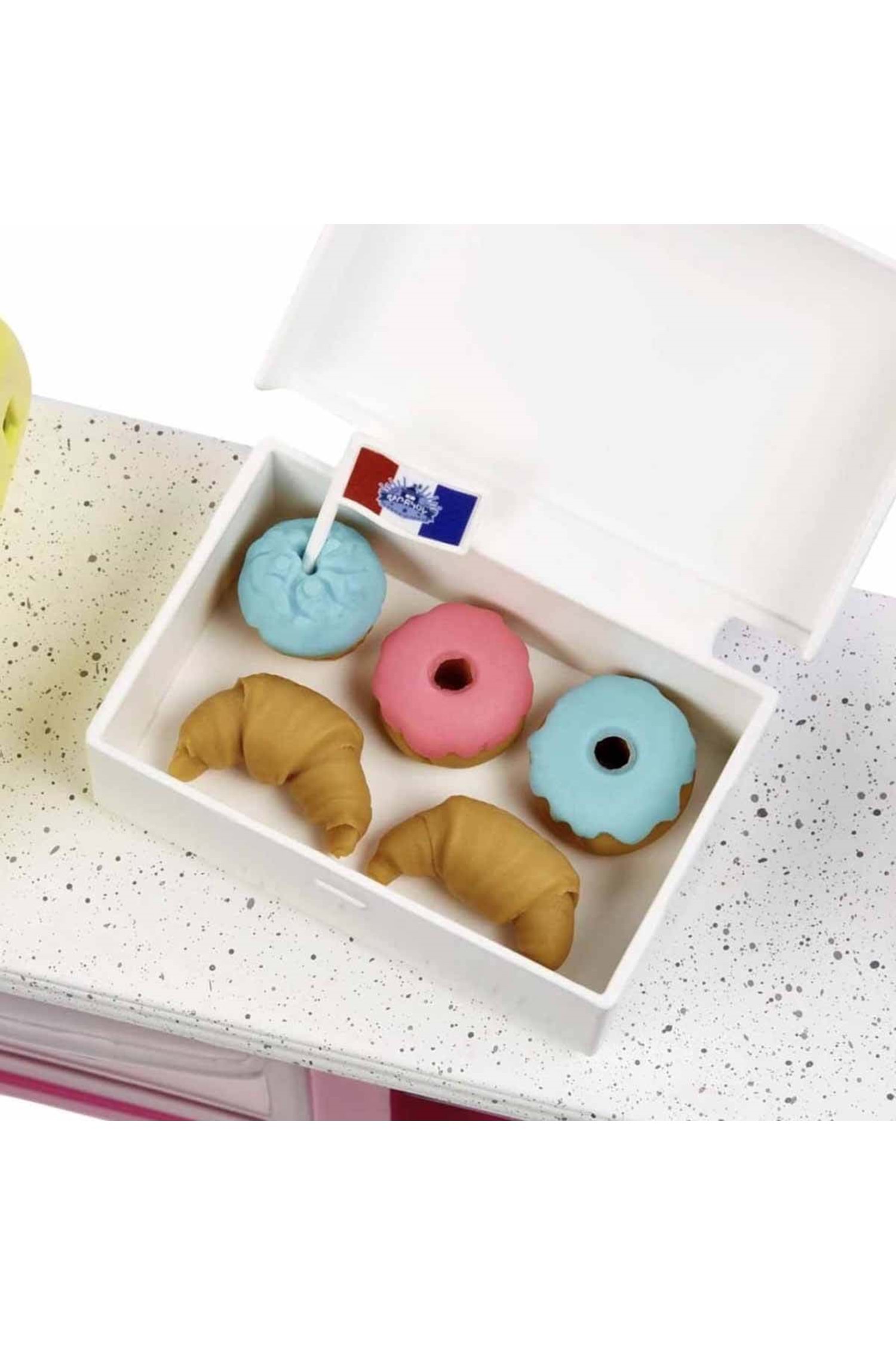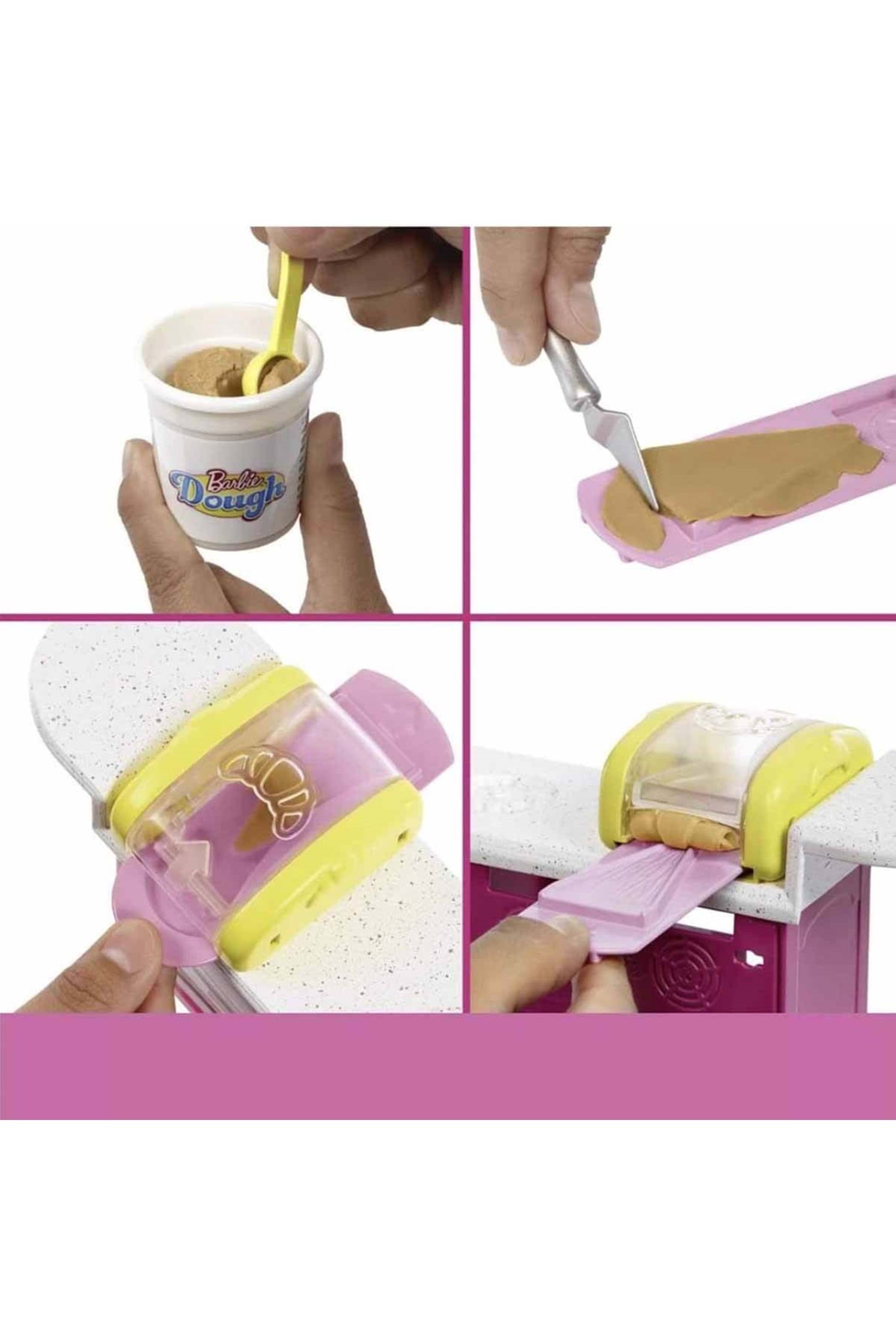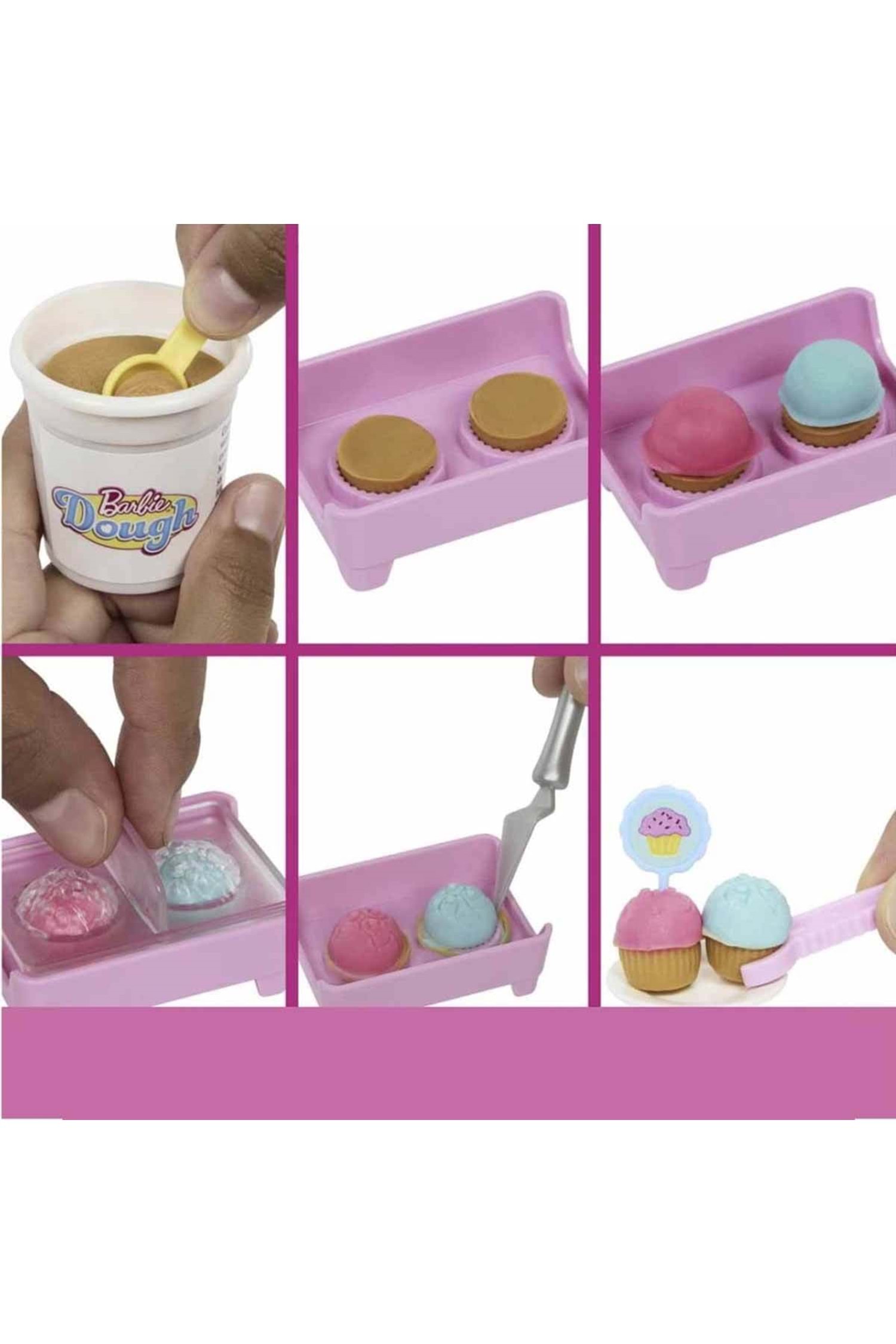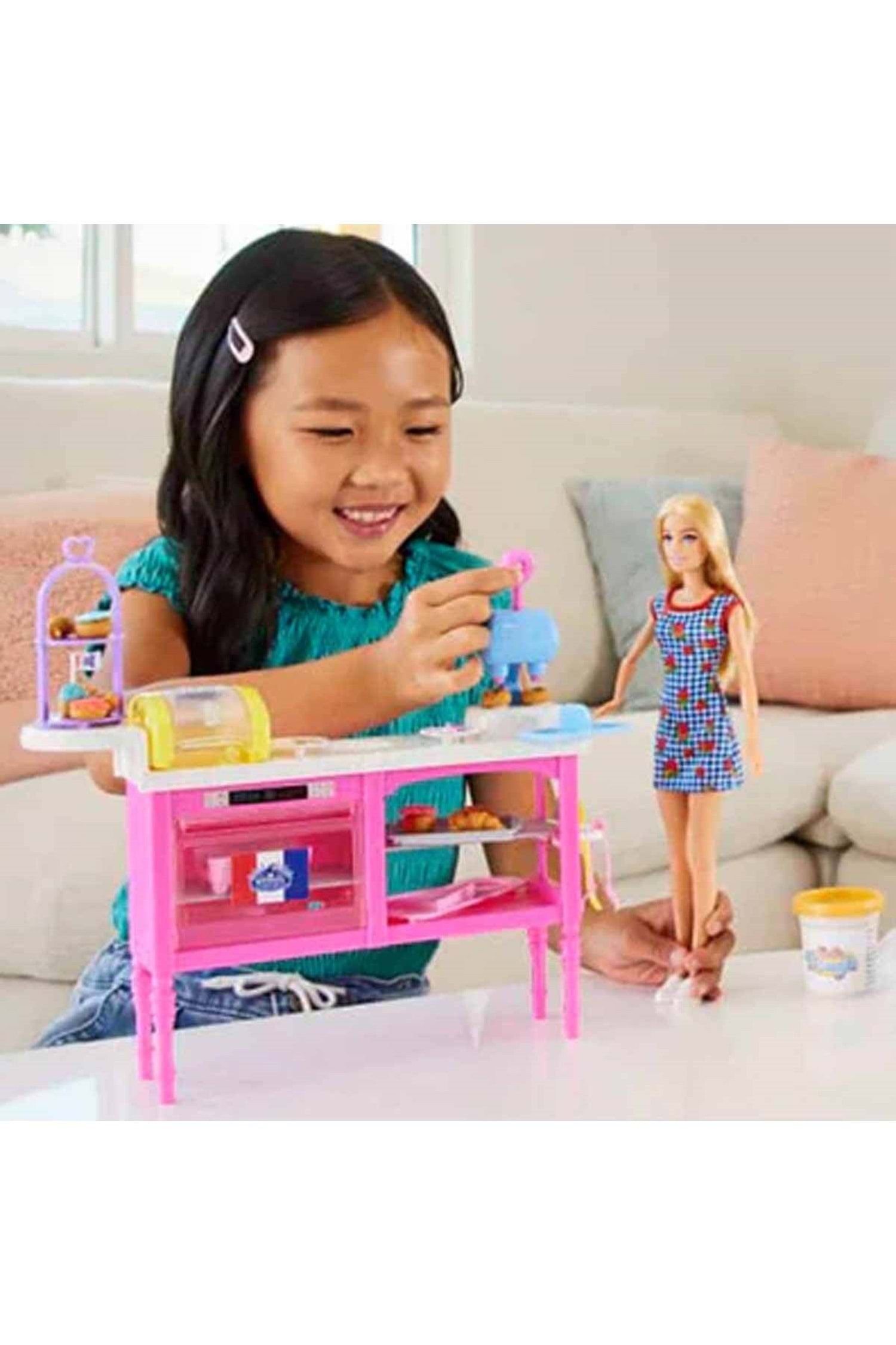 İkonik kafe sahnelerinden esinlenilerek hazırlanmış Barbie'nin Eğlenceli Kafesi Oyun Seti ve Barbie 'Malibu' Roberts bebek ile çocuklar pastacılık oynayabilir! Üç farklı renkte hamur, kalıp ve mutfak araç gereçleriyle kruvasan, mini kek ve çörek gibi lezzetli tatlılar yapıp servis etmek çok kolay. Genç pastacılar kendi tatlılarını süsleyip sergileyebilir ve daha sonra bu tatlıları kutulayıp yeni sahneler yaratabilir veya yeni maceralar oluşturabilir! Hamur yenmez. Bebek tek başına ayakta duramaz. Renkler ve süslemeler çeşitlilik gösterebilir. Çocuklar bu 18 parçalı yaratıcı oyun setiyle Barbie 'Malibu' bebeğe bu büyük macerada kafede çalışırken eşlik edebilir. Barbie It Takes Two dizisindeki ikonik mekandan esinlenilerek tasarlanmış mutfak tezgahı; çörek yapma makinesi, kruvasan yapma makinesi ve fırın gibi pek çok oyun alanı sunar. Genç pastacılar 3 farklı renkteki hamuru, 3 kalıbı, oklavayı ve 2 pasta yapma makinesini kullanarak çörekler, kruvasanlar ve mini kekler yapıp onları süsleyebilir. Çok eğlenceli! Tatlıların yanı sıra tabak, servis araç gereçleri, paket siparişler için içine bir sürü pasta sığabilen kutu gibi ek parçalarla eğlenceyi artırıp hikaye anlatımını güçlendirebilirsiniz. Barbie bebek hikaye çeşitliliğini artırmak adına işten eğlenceye kolaylıkla geçiş yapabileceği şirin bir elbise ve spor ayakkabısı giyer. Çocuklar, diziden esinlenilerek tasarlanan daha fazla Barbie bebek ve oyun setini koleksiyonlarına ekleyebilir ve tüm ekiple maceralara atılabilir (Her biri ayrı olarak satılır ve stoklarla sınırlıdır).