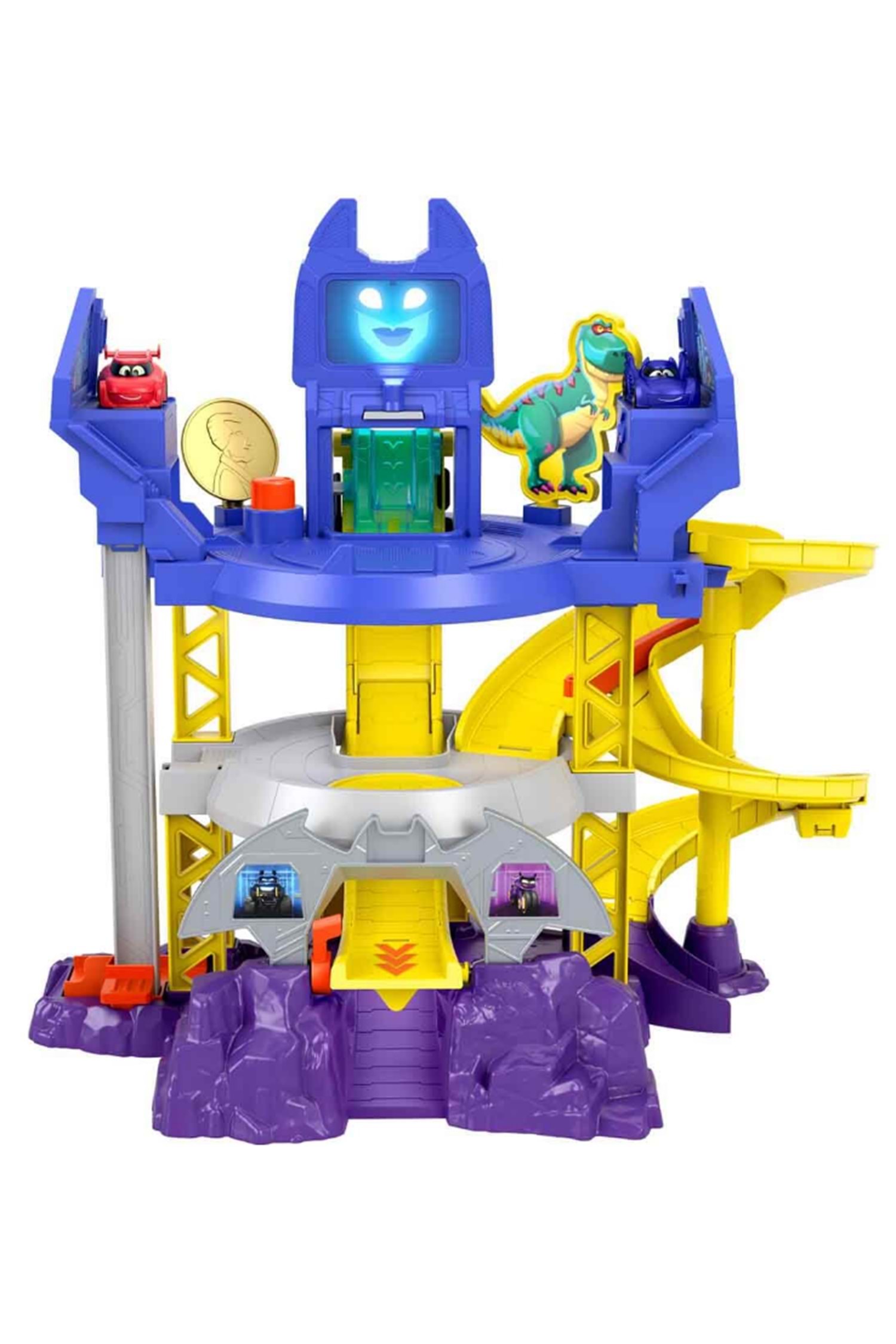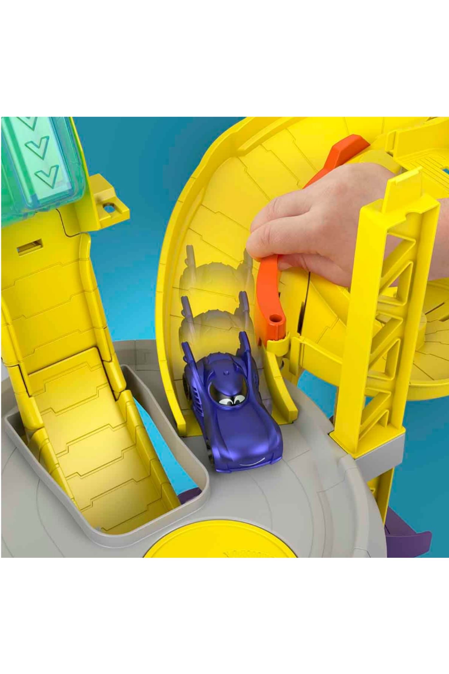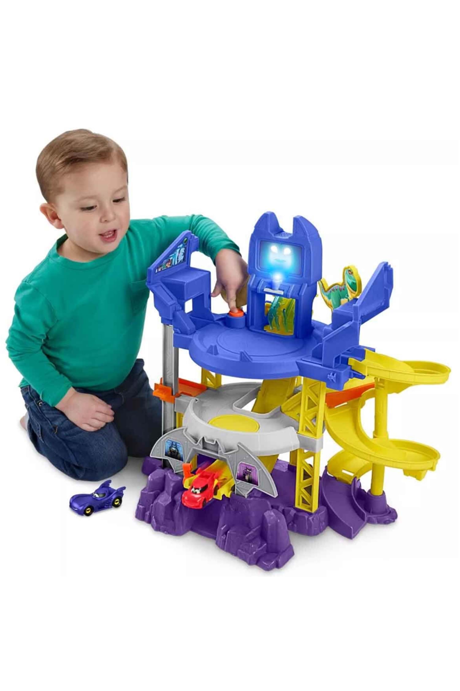 Aksiyon dolu bir kovalamaca zamanı! Fisher Price Sesli ve Işıklı Batwheels Batcave Yarışı ile çocuklar planlar yapıyor, stratejiler geliştiriyor ve dünyayı kötülerden koruyor. Heyecanı ve aksiyonu hiç dinmeyen DC evreninin bir parçası olmak için ne kadar cesursun? Kahraman olmaya cesaretin varsa, bu oyun seti tam sana göre! DC'nin Batwheels serisinin tüm yarış, kovalamaca ve kötüler ile mücadele aksiyonunu yeniden yaşayabilir, eğlenceye kaldığın yerden devam edebilirsin. Yarış setinde 3 katlı oyun alanı, arabaların dolaşmasını sağlayan bir asansör ve bir otoyol bulunur. Tuşa basarak Batcomputer’ı aktifleştirebilir, havalı ışıklar, sesler ve cümleler ile oyunlarını daha gerçekçi kılabilirsin. Çocuklar, 1:55 ölçekli araçları asansör ile yukarı ve aşağı taşıyarak cesurca kötülerin peşine düşebilir veya arkadaşları ile eğlenceli yarış oyunları oynayabilir. Araçlarını fırlatıp onları spiral rampadan aşağı doğru yarışa gönderen çocuklar, oyun seti ile eğlenceye hazır! Çocukların yeni hikayeler oluşturarak hayal güçlerinin ve yaratıcılıklarının gelişmesini desteklerken onların oyun kurma ve taklit becerilerine katkı sağlar. Arkadaşlarıyla oynayacakları oyunlar onların sosyalleşmelerine yardımcı olur. Kutu içerisinde; oyun seti ve 2 adet araç bulunmaktadır. Ürün; 3 x 1,5V AAA pil ile çalışmaktadır. Piller kutuya dahildir. Kutu ölçüsü: 66 x 11 x 38 cm Ağırlık: 2,290 kg