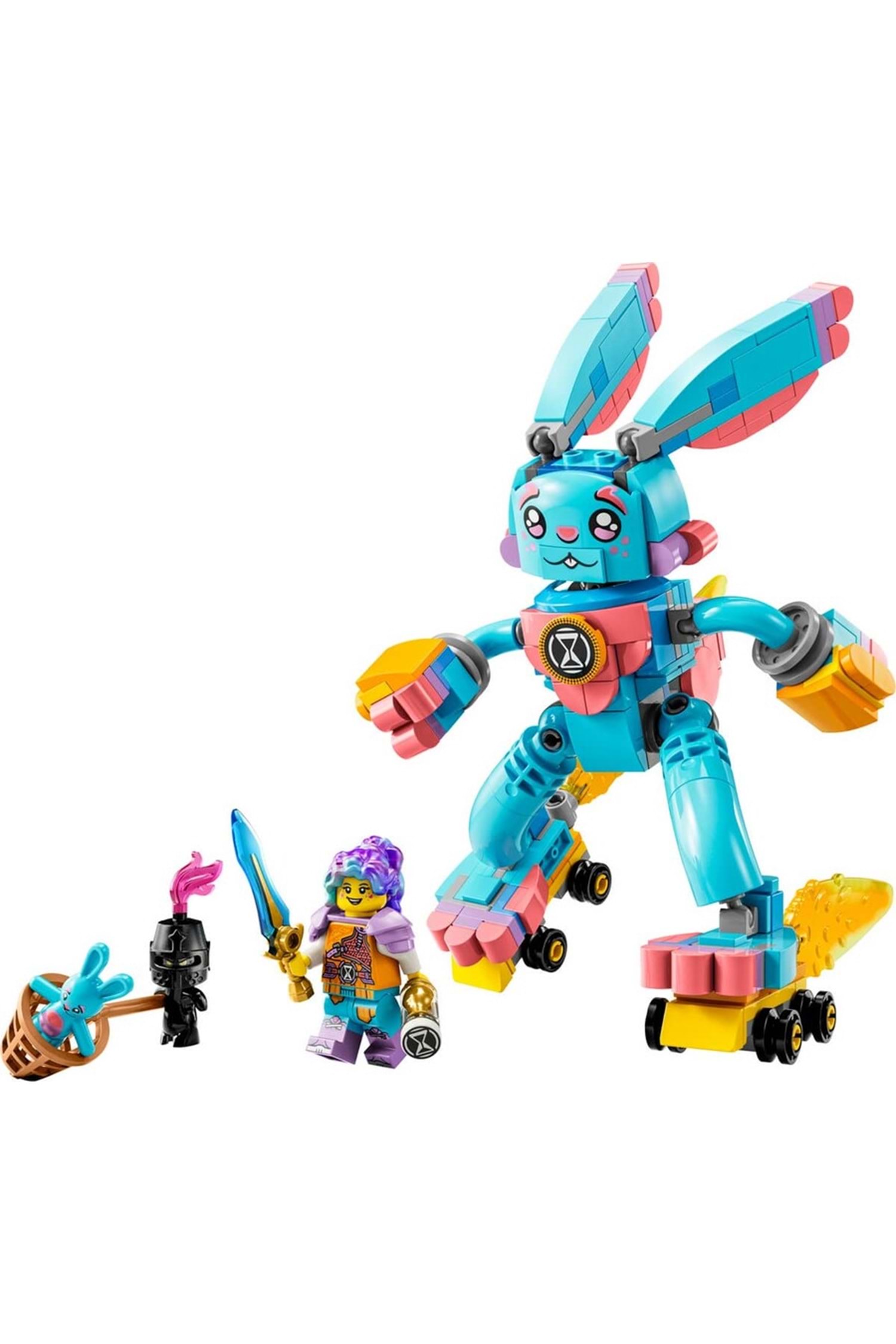 7 yaş ve üzeri çocuklar, LEGO® DREAMZzz™ Izzie ve Tavşan Bunchu (71453) oyuncak yapım setiyle rüya dünyasının aksiyonuna dalabilir. TV dizisinin heyecan verici hikayesine dayalı bu sette çocuklar, bir Kabusdoğan tarafından kaçırılan İzzie’nin en sevdiği pelüş oyuncağı kurtarmak için oyuncak hayvanın büyük versiyonunu yapmasına yardım eder. 1 set, 2 yapım şekli Bunchu’nun büyük canlı versiyonunun tam eklemli boynu, kolları ve bacakları vardır. İnşa ederken çocuklar hayal güçlerini kullanabilir ve hikayeye dayalı yapım talimatlarını uygulayarak paten ve eldiven ya da arı kanadı ve iğnesi takmayı seçebilir. Şahane bir minifigür Izzie’nin detaylı minifigürü, aksiyonu başlatmaya yardımcı olur. Izzie’nin zırh, kılıç ve kum saati gibi aksesuarları vardır. Çocukların tüm hikayeyi canlandırabilmeleri için Kabusdoğan ve küçük bir Bunchu figürü de eklenmiştir.; Bunchu’ya hayat verin – Çocuklar, DREAMZzz TV dizisine dayalı LEGO® DREAMZzz™ Izzie ve Tavşan Bunchu (71453) oyuncak yapım setiyle hayali oyunların keyfini çıkarabilir; Tam eklemli – Çocukların kolayca poz verdirip farklı sahneleri canlandırmaları için Bunchu’nun boynu, kuyruğu, bacakları ve kolları tam eklemlidir; 2 farklı yapım seçeneği – Sette bulunan farklı parçalar sayesinde çocuklar, Bunchu’ya paten ve eldiven takmak ya da arı kanatları ve iğnesi takmak arasından seçim yapabilir; Izzie minifigürü – Oyuncak setinde Izzie minifigürü ile zırh, kılıç ve kum saati aksesuarları bulunur; Küçük Bunchu dahildir – Çocukların tüm hikayeyi canlandırabilmeleri için orijinal oyuncak tavşan Bunchu’nun da bir figürü bulunur; Saatlerce oyun – Bu set, kendi başlarına veya arkadaşlarla saatlerce oynayabilen 7 yaş ve üzeri çocuklar için tasarlanmıştır; Boyutlar – Roket patenleri olmadan Bunchu’nun boyu 19 cm’dir; Hikayeye dayalı yapım talimatları – Setin hikayeye dayalı yapım talimatları, ayrıca LEGO® Builder uygulamasında da dijital olarak bulunur; Birinci kalite – LEGO® yapım parçaları, her seferinde tutarlı olarak takılacak şekilde tasarlanmıştır; Önce güvenlik – LEGO® yapım parçaları, katı güvenlik koşullarını karşıladıklarından emin olmak için titizlikle test edilir