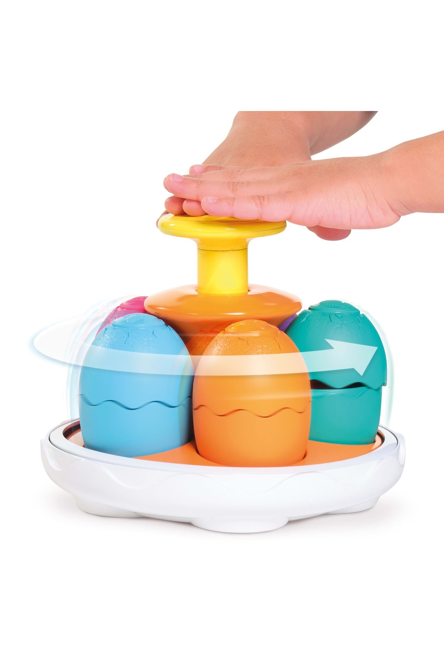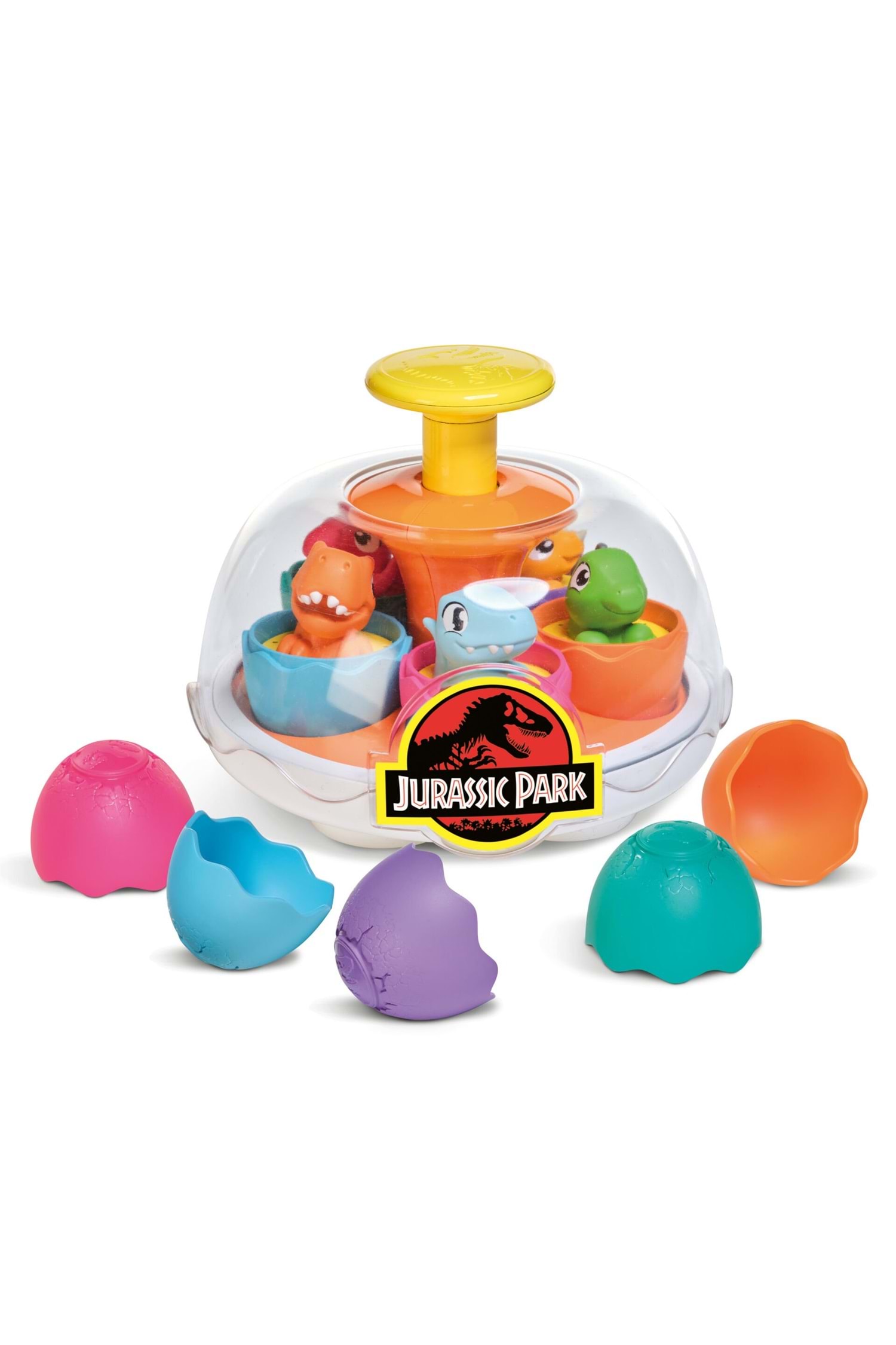Bir dinozoru ilk defa gördüğünüz zamanı hatırlıyor musunuz? Toomies Jurassic World dinozor oyuncakları, çocukların gelişimini destekleyecek bir oyun deneyimi için tasarlandı ve yeni bir maceraya hazır! Dönen dino yumurtaların rengarenk 5 farklı dinozor yumurtası bulunur. Kapağı kaldır. Düğmeye bas, hatta daha hızlı bas, ta ki yumurtalar fırlayarak çıkana kadar! Dinozor yumurtalarını renklerine göre eşleştirerek geri topla ve yerleştir. Sonra tekrar oynamaya başla! Gürlediklerini duymak için bebek dinozorları salla. Jurassic World Dönen Dino Yumurtalar, renk algısını ve ince motor becerilerini geliştirirken neden-sonuç ilişkisi kurmayı öğretir. Toomies ile Jurassic World'ün eğlence dolu dünyasına adım atın!