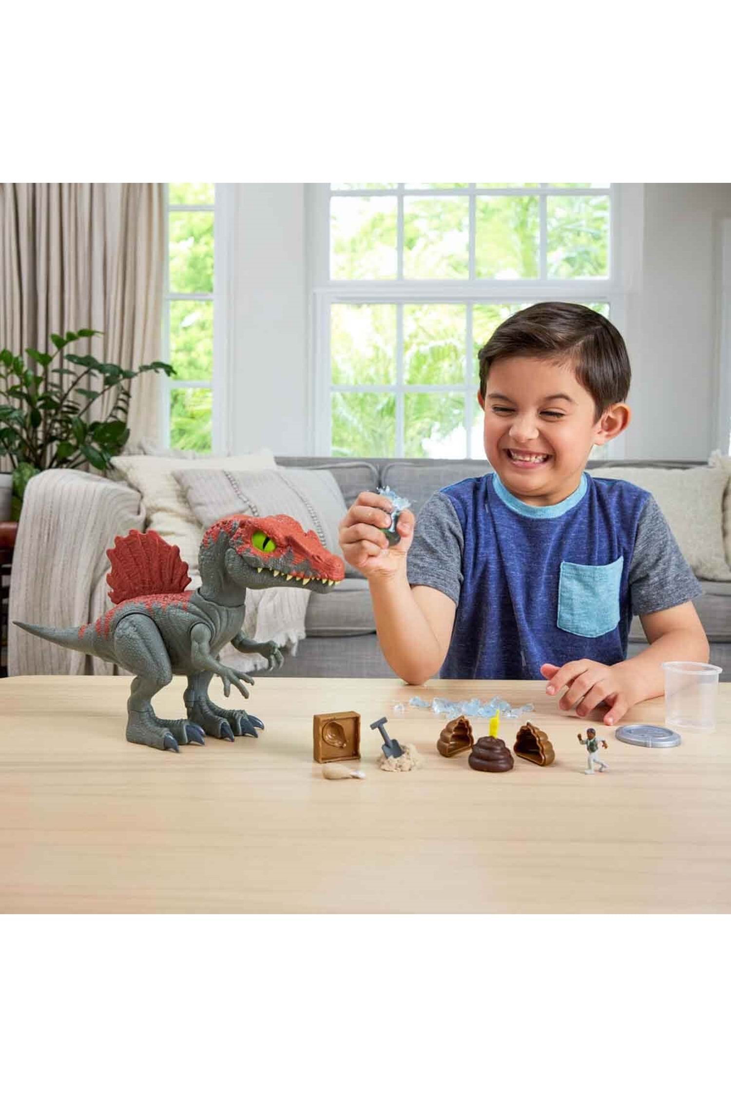 Spinosaurus dinozor figürü, sürükleyici kutu açma ve keşif deneyimiyle duyusal gelişimi destekleyici dinozor oyunları ve hikaye anlatımına teşvik eder. Dinozorları sevenler, Jurassic World serisindeki heyecan verici maceraları yeniden canlandırırken paketteki çeşitli sürprizleri de keşfeder. 33 cm uzunluğundaki görkemli Spinosaurus'un yanı sıra, sette Donmuş Çamur ile gizlenmiş bir mini dinozor, Fosilleşmiş Kum, Oyun Hamuru ve daha birçok ayrıntı yer alır. Jurassic World'ü ve dinozor oyunlarını seven 4 yaş ve üzeri çocuklar için harika bir hediyedir. Renkler ve süslemeler çeşitlilik gösterebilir. Saldırıya geçin, keşfe çıkın ve günü kurtarın! Dinozor temalı hikaye anlatma oyunlarını seven hayranlar, 33 cm uzunluğundaki dinozor figürünün yanı sıra duyusal uyarım sunan farklı keşifler yapmaya bayılacak. SALDIRIYA GEÇİN! Güçlü Spinosaurus'un kuyruğunu iki yana hareket ettirerek dinozorun ambalajı parçalayarak dışarı çıkmasına yardımcı olun. Dinozorun agresif ısırma hareketini görmek için üstteki düğmeye basın. KEŞFE ÇIKIN! Ambalaj içine saklanmış birçok sürpriz sizi bekliyor. Donmuş Çamur'un içinde mini bir dinozor gizli. Antik Kum, eğlenceli bir kazma ve şekillendirme deneyimi sunar. Oyun hamurundan Dinozor Dışkıları hikayeye farklılık katar. GÜNÜ KURTARIN! Bu set, aksiyon dolu hikayelere ilham verir. Orman rehberini bulun ve çok geç olmadan gizli uydu telefonu keşfedin. Spinosaurus, yakaladıklarını yutup dinozor dışkısına çevirebilir. Hem hediyenin kendisi hem de kutu açma deneyimi çok eğlenceli! Dinozor temalı hikayeleri ve keşif yapmayı seven 4 yaş ve üzeri çocuklar için harika bir hediyedir.