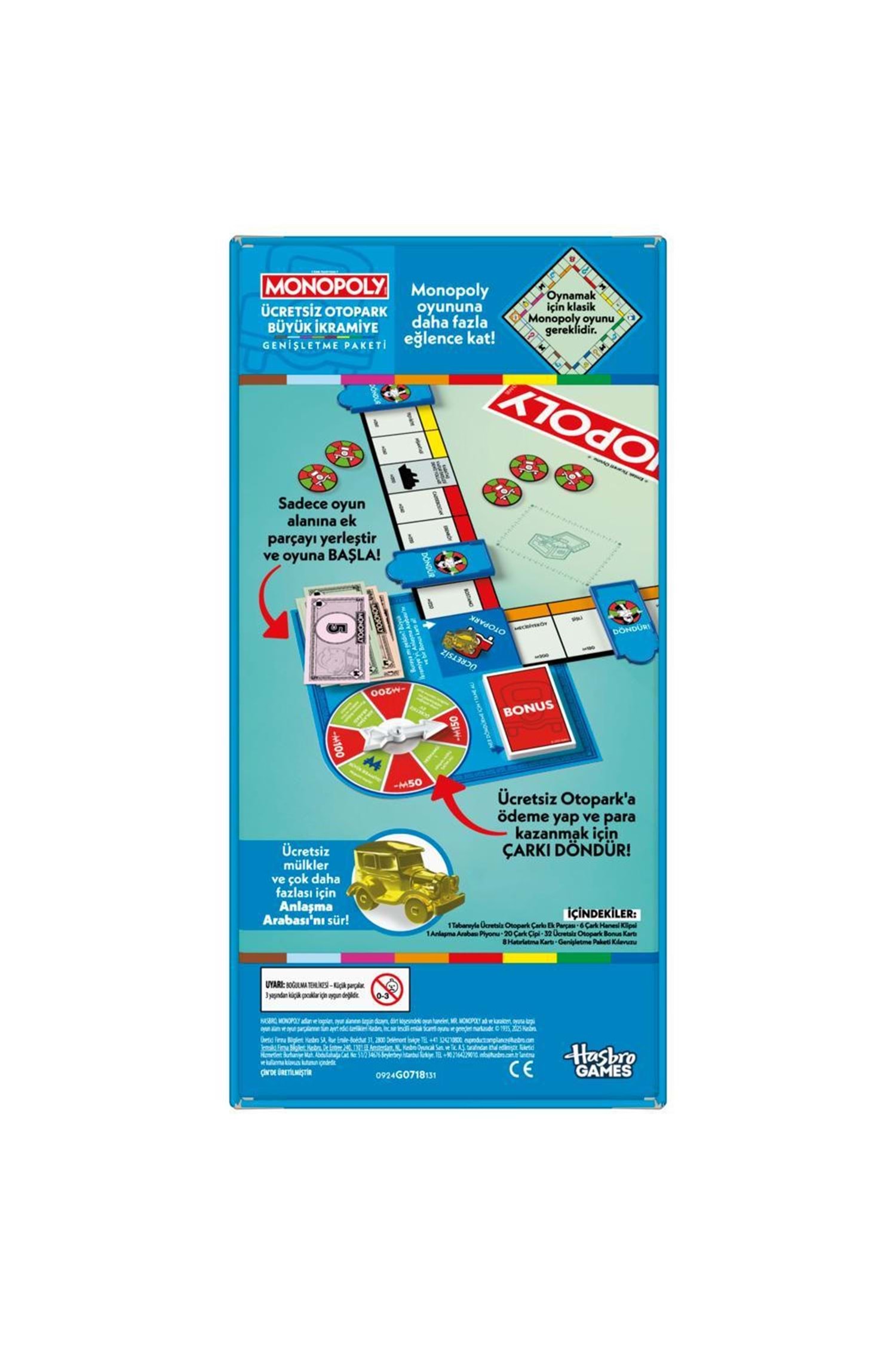 Şansınızı zorlayın ve nakit para kazanın! Monopoly Ücretsiz Otopark Büyük İkramiye Genişletme Paketi ile Monopoly oyununa yepyeni bir soluk geliyor ve oynamak neredeyse iki kat daha kısa sürüyor. Bu genişletme paketini klasik Monopoly oyun alanına ekleyin ve Ücretsiz Otopark alanını bir Büyük İkramiyeye dönüştürün. (Oynamak için klasik Monopoly oyunu gereklidir. Her biri ayrı satılır.) BÜYÜK paralar kazanmak için çarkı döndürün! Anlaşma Arabasını piyona yükseltin ve ücretsiz mülkler ile daha fazlasını almak için Bonus kartları çekin. Tüm mülkler elde edildiğinde veya bir oyuncu iflas ettiğinde oyun sona erer. En zengin oyuncu oyunu kazanır! Aile Oyun Gecesi, tatiller ve dilediğiniz an hızlı bir eğlence için bu sürükleyici Monopoly genişletme paketini çıkarın. Aile oyunları ve çocuk kutu oyunları da harika çocuk hediyeleridir. HASBRO ve MONOPOLY adları ve logoları, oyun tahtasının ve dört köşedeki kutuların benzersiz tasarımı, MR. MONOPOLY adı ve karakterinin yanı sıra oyun tahtasının ve oyundaki parçaların eşsiz özelliklerinin her biri mülk ticareti oyunu ve oyun ekipmanları için Hasbro, Inc. şirketine ait ticari markalardır. • KLASİK MONOPOLY OYUNUNA YENİ BİR SOLUK: Monopoly Ücretsiz Otopark Büyük İkramiye Genişletme Paketi ile Monopoly oyununu renklendirin ve daha kısa sürede oynayın! BU BİR GENİŞLETME PAKETİDİR, TEK BAŞINA BİR OYUN DEĞİLDİR. (OYNAMAK İÇİN KLASİK MONOPOLY OYUNU GEREKLİDİR. Her biri ayrı satılır) • YARI ZAMANDA OYNAYIN: Öğrenmesi kolay, hızlı oynanabilen bu genişletme paketiyle Monopoly aile oyununu yaklaşık 40 dakikada oynayın! Aileniz ve arkadaşlarınızla her zaman keyifli vakit geçirmek için harikadır • SEVİLEN EV KURALI ARTIK GERÇEK: Bu genişletme paketini Monopoly oyununa ekleyin ve oyuncuların yakından tanıdığı klasik Monopoly oyununun tadını çıkarın (üstelik öğrenmesi kolay bir sürprizle!) Ücretsiz Otoparkı döndür ve kazan ikramiyesine dönüştürün • BÜYÜK PARALAR KAZANMAK İÇİN DÖNDÜRÜN: Bu eğlenceli aile oyunu genişletmesinde, Şans ve Kamu Fonu haneleri artık Çark haneleri. Bunların üzerine gelen oyuncular Büyük İkramiye için çarkı döndürebilirler • ANLAŞMA ARABASINI SÜRÜN: Çark ve Bonus Kartları, şanslı oyuncuların Anlaşma Arabası piyonuna geçmesini sağlar. Arabayı kullandıklarında ücretsiz mülk edinebilir ve kiradan kurtulabilirler • LÜKS BONUSLARI TOPLAYIN: Ücretsiz mülkler, ücretsiz evler, nakit para ve daha fazlası gibi her türlü lüks bonusu kazanmak için Ücretsiz Otopark Bonus kartlarını çekin • ÇOCUKLAR İÇİN EĞLENCELİ HEDİYELER: Monopoly oyunları ve aile kutu oyunları çocuklar ve yetişkinler için harika bayram hediyeleri, yılbaşı hediyeleri ve 8 yaş ve üzeri için doğum günü hediyeleridir • İçindekiler: Çarklı Oyun Alanı Eklentisi, 6 Çark Hanesi Klipsi, Anlaşma Arabası Piyonu, 20 Çark Çipi, 32 Ücretsiz Otopark Bonus Kartı, 8 Hatırlatma Kartı ve Genişletme Paketi Kılavuzu. 8 yaş ve üzeri içindir. 2 ila 6 oyuncuyla oynanır. Oynamak için Klasik Monopoly kutu oyunu gereklidir. Her biri ayrı satılır.