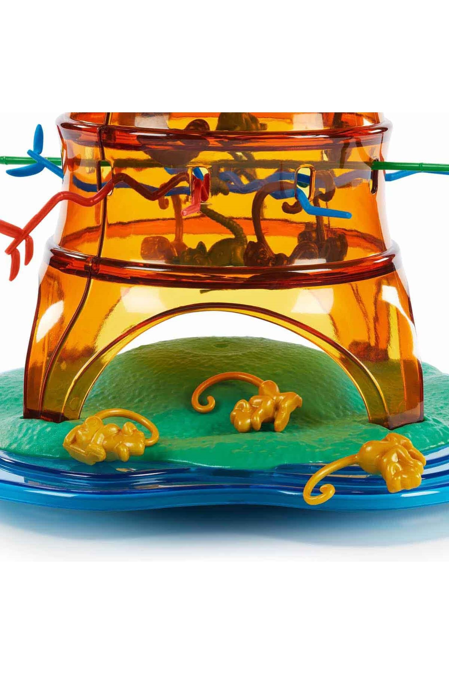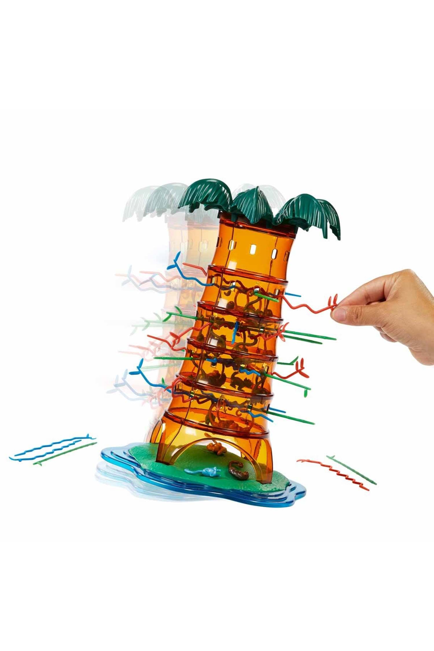 Hem ebeveynler hem de çocuklar öğrenmesi kolay, oynaması keyifli Tumblin' Monkeys Oyunu'na bayılacak! Tumblin Monkeys oyununda amacınız, sıra sizdeyken hiçbir maymunun ağaçtan düşmemesini sağlamak. Ağacın içinden geçirdiğiniz renkli çubuklarla bir ağ yapın ve maymunları ağacın içine yerleştirin. Ardından zarı atın ve zarın gösterdiği renkteki çubuklardan herhangi birini çekerek sırayla oynayın. Yaşı en küçük olan oyuncu oyunu başlatır. Ağaçta, zarda çıkan renkte çubuk kalmamışsa şanslı gününüzdesiniz demektir. Bu durumda sıra diğer oyuncuya geçer. Aman dikkat! Yanlış bir tercih, maymunların düşmesine ve sizin hanenize yazılmalarına neden olur. En az maymunu düşüren oyuncu kazanır. Tumblin' Monkeys Oyunu, okuma gerektirmediğinden küçük yaştaki çocuklar için idealdir. Oyun, parlak sarı renkte şeffaf bir plastik palmiye ağacıyla gelir. Bu sayede, hareketli maymunları plastik çubuklarla kıvrık kuyruklarından yakalamaya çalışırken tüm hareketlerinizi görebilirsiniz. Kutu içerisinde; bir ağaç, 30 maymun, 3 farklı renkte 30 sopa ve özel zar yer almaktadır.