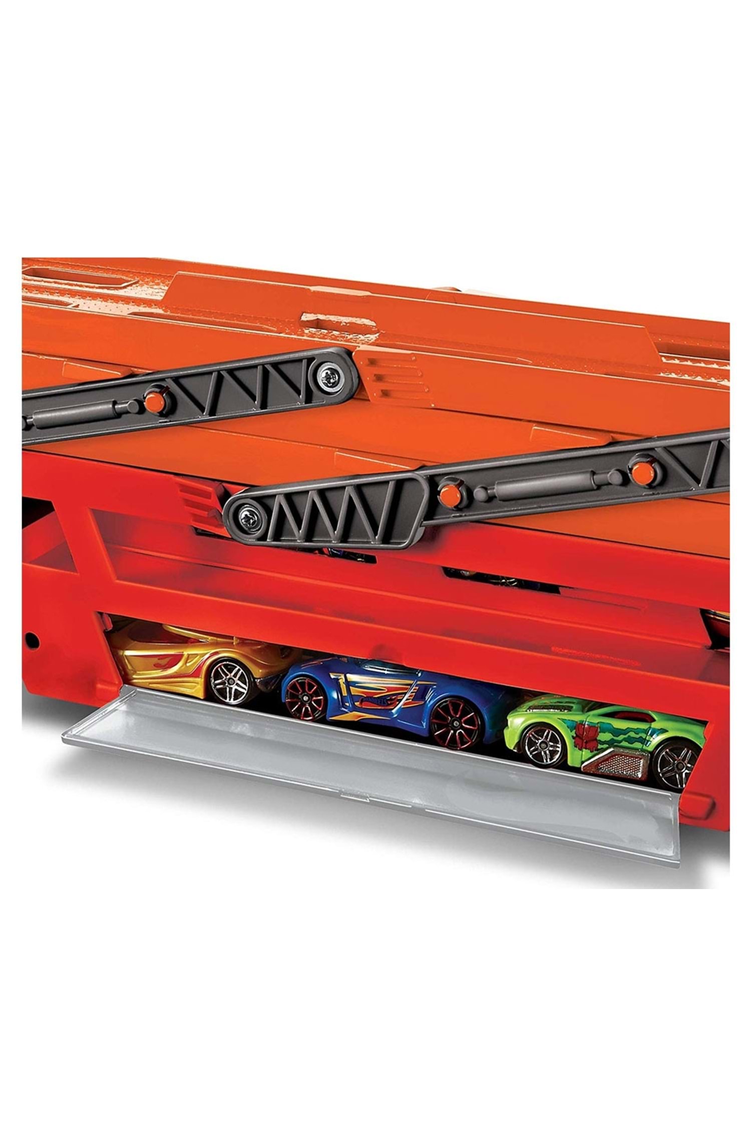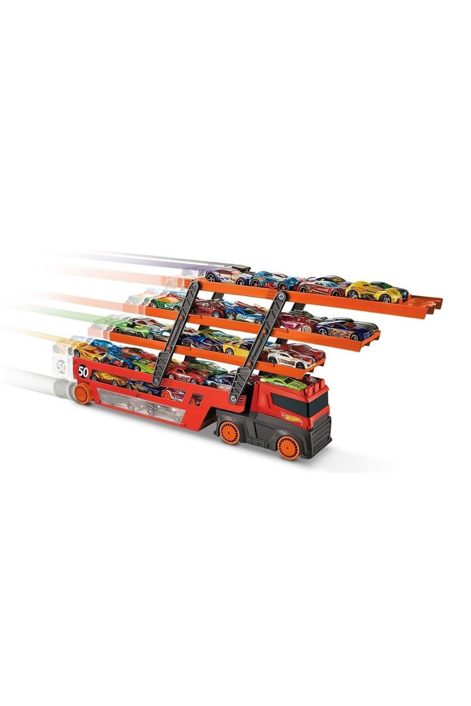 Hot Wheels Mega Tır Kırmızı Turuncu GHR48 Ürün Özellikleri Daha büyük maceralar için daha büyük bir tır! Hot Wheels Mega Taşıyıcı Tır 6 genişleyebilen kademesiyle 50’den fazla Hot Wheels aracı taşıyabiliyor. Teçhizatın arkasındaki rampa katlaması, çocukların hayal güçlerini ortaya çıkarmak ve hayal dünyalarını genişletmek için Hot Wheels şehir setlerine bağlanmalarını sağlar. Şeffaf yan panel açılır, böylece çocuklar favori modellerini özel bir yerde saklayabilir. Yaş : 3 Yaş ve Üzeri
