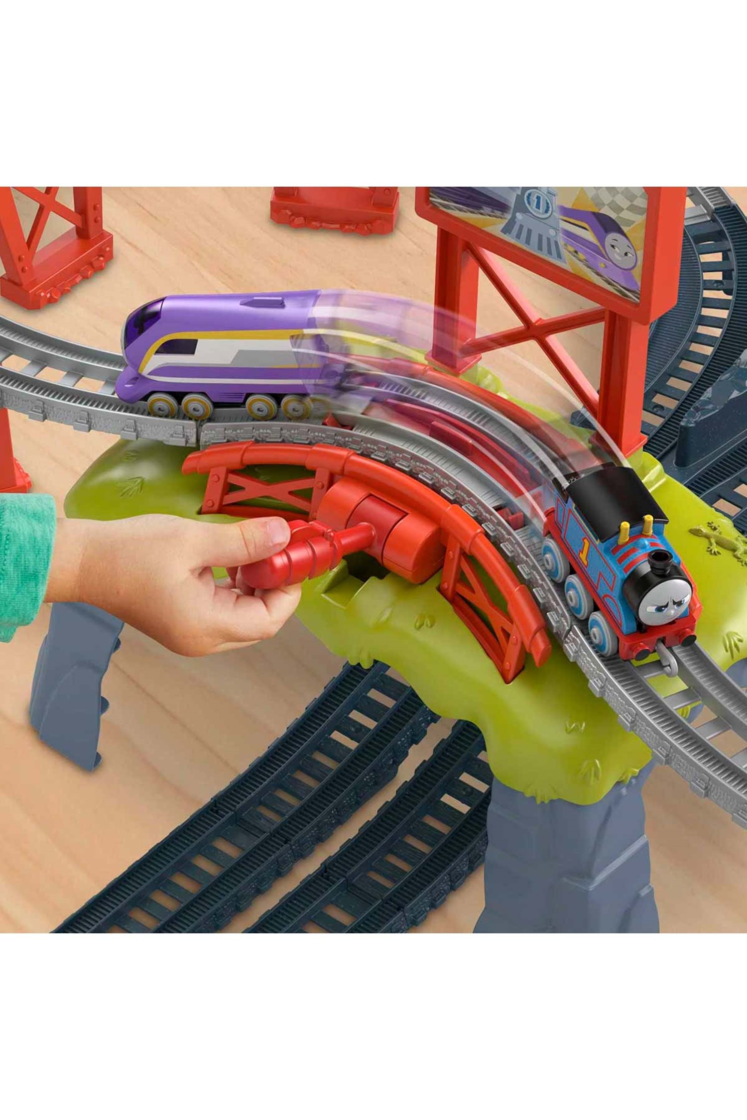 Fisher-Price Thomas ve Arkadaşları oyuncaklarıyla minikler, en sevdikleri çizgi karakterlerle kendi demir yolu maceralarına adım atabilir. Thomas ve demir yolundaki arkadaşlarını yarıştırmak, çocuklara takım çalışması gibi kavramları öğretir ve hayal güçlerini geliştirir. Fisher-Price'ın sunduğu bu tekerlekli tren ve pist setiyle çocuklar, Thomas ve Arkadaşları çizgi filmindeki efsane Sodor Kupası yarış heyecanını tekrar yaşayacak! Çocuklar, Thomas ve Kana metal trenleri başlangıç kapılarına yerleştirebilir, ardından kolu çekip iki arkadaşın Cannonball Virajı boyunca hızla yarışıp bitiş çizgisine varmasını sağlayabilir. Pist seti, dostça gerçekleşen bu kıyasıya rekabete bambaşka eğlenceler katan virajlar ve dolambaçlı yollarla doludur. Bitiş çizgisine ilk kim ulaşacak ve kupayı kazanacak? Thomas ve Arkadaşları tekerlekli tren ve pist seti, Thomas ve dostu Kana ?ile başa baş yarış eğlenceleri sunuyor. Çocukların kolu indirip kaldırarak kontrol edebileceği lokomotifler, pist boyunca yarışıp Sodor Kupası'nı kazanabilmek için bir an önce bitiş çizgisine ulaşmaya çalışıyor. Sete dahil olan 2 adet tekerlekli lokomotif plastik bağlantı noktalarıyla diğer tekerlekli ve motorlu lokomotiflere, araçlara, yük vagonlarına veya yolcu vagonlarına bağlanabilir (Diğer oyun parçaları ayrı olarak satılır ve stoklarla sınırlıdır). Daha aksiyon dolu Sodor maceralarına atılmak için bu seti, diğer Thomas ve Arkadaşları pist setleriyle (Ahşap olanlar hariç) birleştirebilirsiniz. (Ek ray setleri ayrı olarak satılır ve stoklarla sınırlıdır.) Okul öncesi 3 yaş ve üzeri çocuklar içindir. Ürün ölçüsü: 28,2 x 87,1 x 90,8 cm Kutu ölçüsü: 31,2 x 43,5 x 11,2 cm