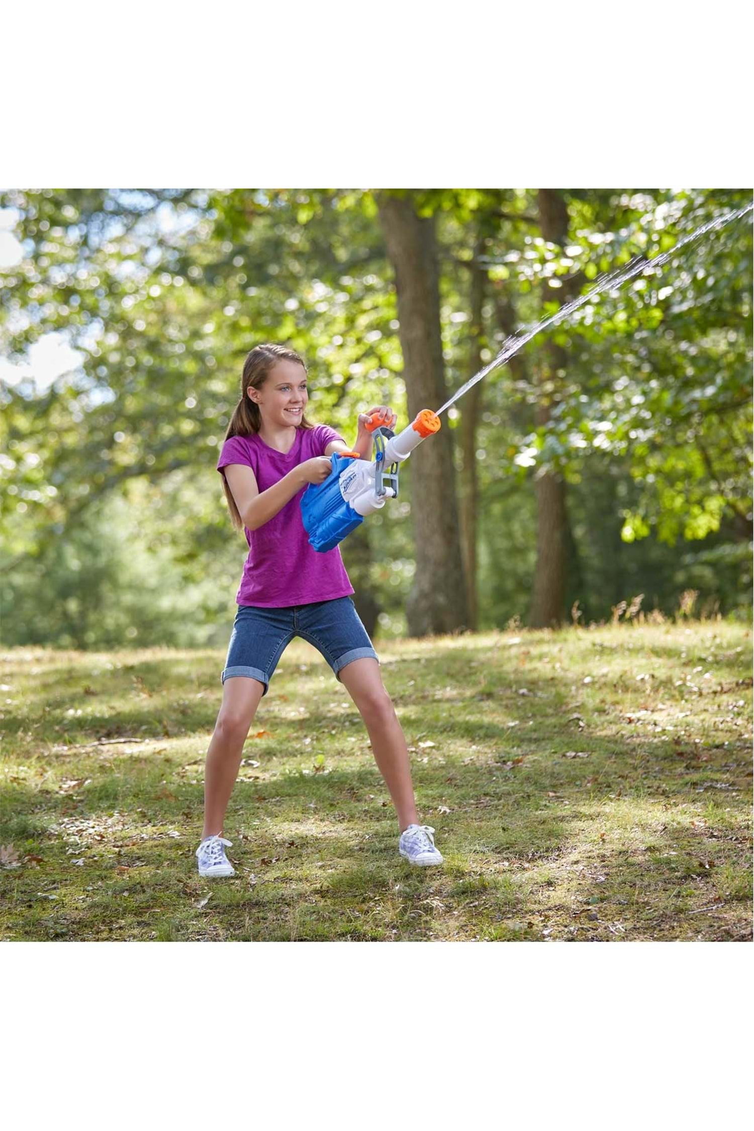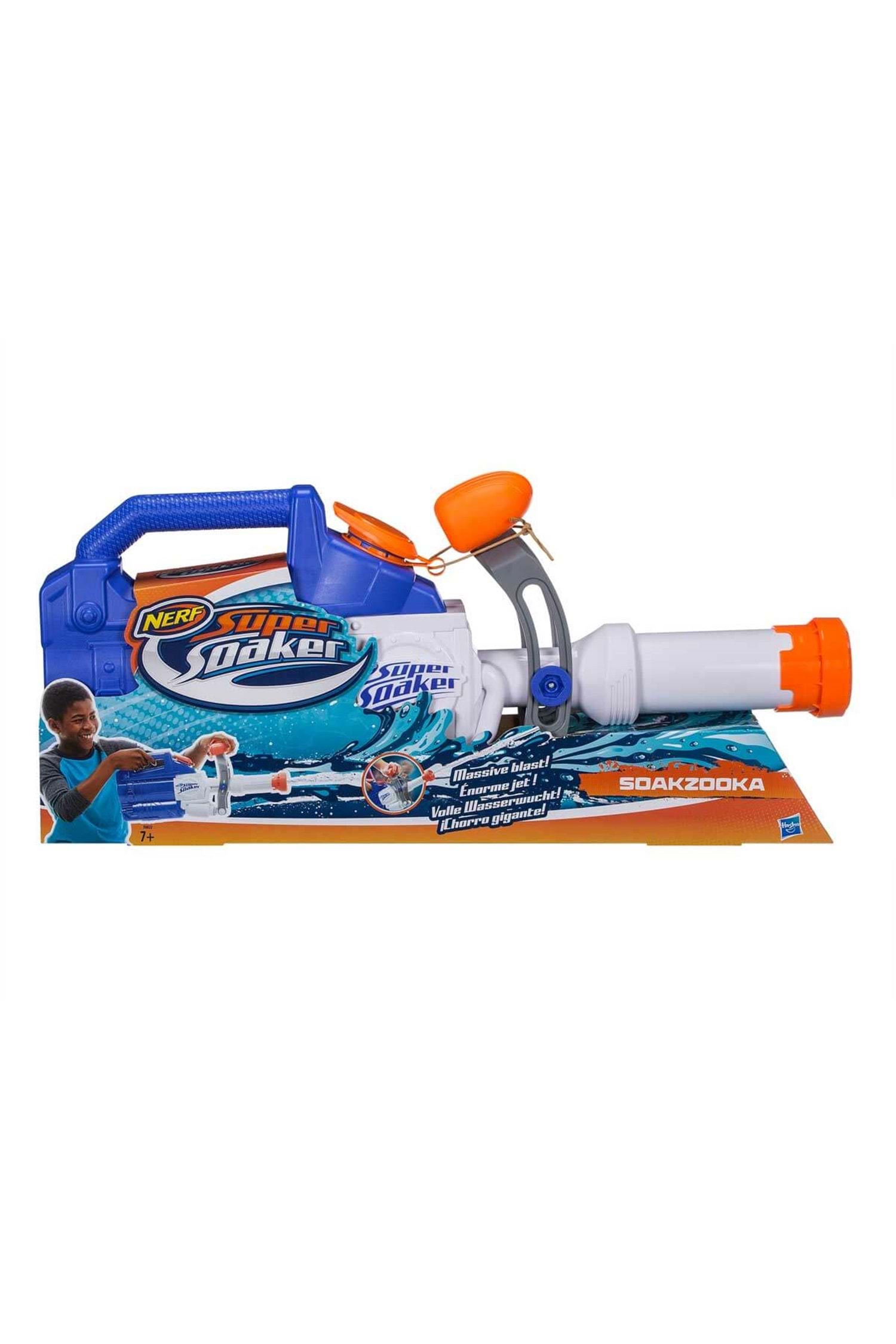 Nerf Super Soaker Soakzooka su tabancası ile eğlence dolu bir oyuna hazır olun! Özel tasarımıyla dikkat çeken yeni Nerf Super Soaker Soakzooka'nın ön tarafındaki kolu öne ve geriye iterek arkadaşlarınızı baştan aşağı ıslatın! Her pompada yaklaşık 180 ml su fışkırtan Soakzooka'nın su tankı, kesintisiz bir su savaşı için 1,6 litre kapasiteye sahip! Arkadaşlarınızla ister bahçede ister sahilde açık havada eğlence dolu bir oyun oynamanın keyfini çıkarın! Su haznesini doldurun, su tabancasının kolu ileri geri ittirin ve macera dolu dakikalar geçirin! Paket ölçüsü: 7 x 52 x 24 cm.